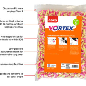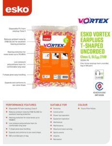 Esko Vortex Earplugs T-Shaped, C5, Uncorded, 500 Pairs Refill Bag